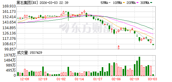 黑石集团股价下挫7.5%,跌至自2023年11月以来的最低水平。