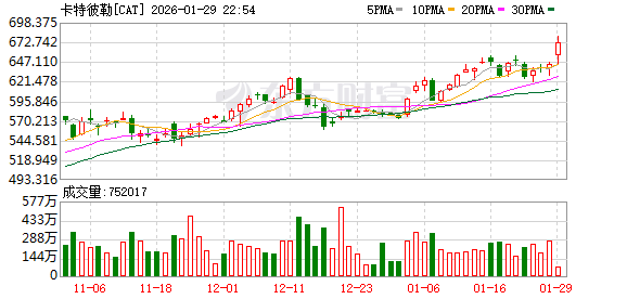 卡特彼勒股价涨超4%,再创历史新高,其Q4业绩超预期,AI数据中心电力需求激增。
