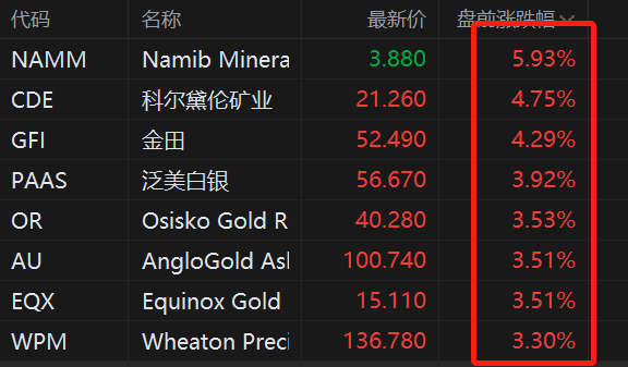 格隆汇2月4日|金银价格回升,美股黄金股盘前集体走强,Namib Minerals涨近6%,科尔黛伦矿业涨近5%,金田涨4.3%,泛美白银涨4%,Anglogold Ashanti、Aris Mining等多股涨超3%。