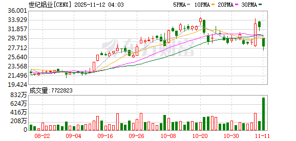 世纪铝业股价下跌13.1%,有报道称嘉能可减持该公司股份。