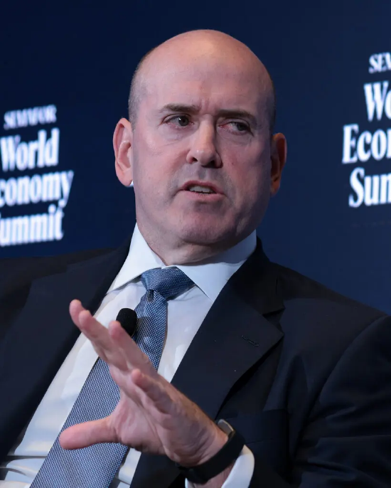 一张哈维・施瓦茨的特写照片,他正在向观众发表演讲,左手做出手势。哈维・施瓦茨是全球顶级私募股权公司凯雷集团的首席执行官,他曾预测私募行业将迎来丰收之年。