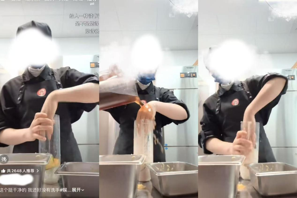 根据网上所流传的视频,1月5日晚间,一名身穿霸王茶姬工作服的人员,在未佩戴手套的情况下,徒手挤压柠檬,将茶汤倒在自己的手背上,让茶汤沿手背流入奶茶制作杯;该人员还将洒在台面上的汤汁用手抹回杯中,并直接用手在杯中搅拌饮品。该视频配文为“这个挺干净的,我还好没洗手”。