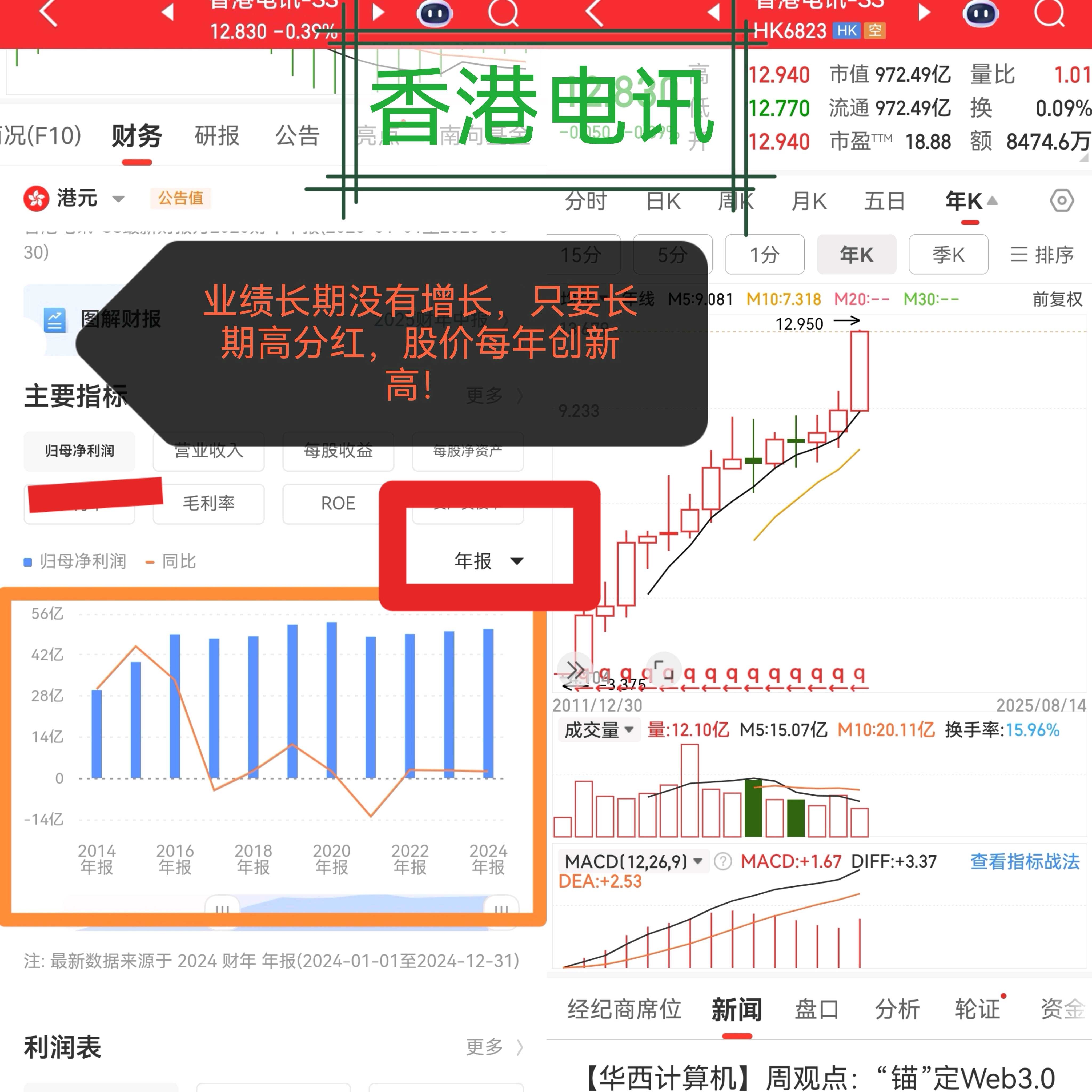 : 中华电信,估值从20倍提升到25倍,回报率却只有百分之42。