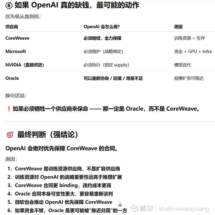 :我刚刚问了gpt,它说openai就算取消和甲骨文的订单也不可能取消和coreweave的订单。