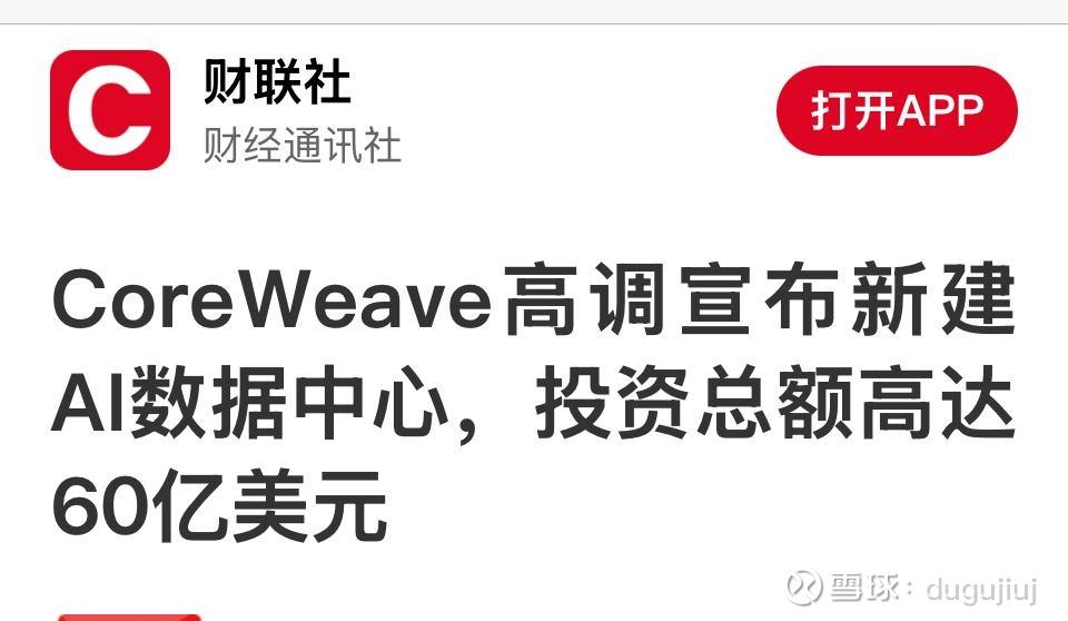 : CoreWeave 的数据中心扩张计划单体投资 高达约 60 亿美元。不确定的话,人家也不会拿 60 亿美元试错