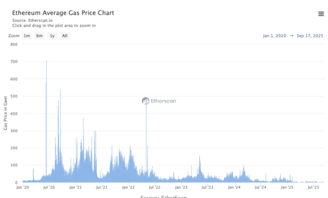 Source:EtherScan在早期阶段,公链的吞吐量极其有限,区块空间是⼀种稀缺资源。以以太坊为例,DeFi Summer 期间,在各类链上活动叠加的情况下,DEX 交互的单笔成本常常在 20–50 美元,极端拥堵时的交易成本达到数百美元。到了 NFT 时期,市场对扩容的需求和呼声更是达到顶峰。