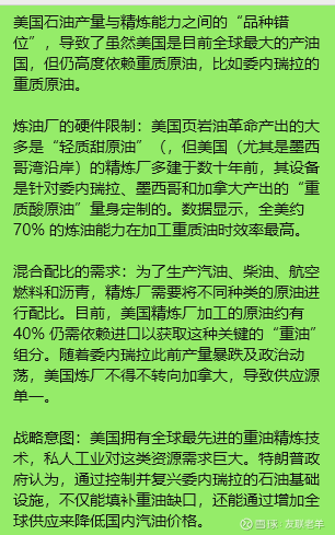 美国在大量出口过剩轻质油的同时,必须战略性地获取委内瑞拉的重油,以维持国内能源工业的最高效率和消费者的低成本。