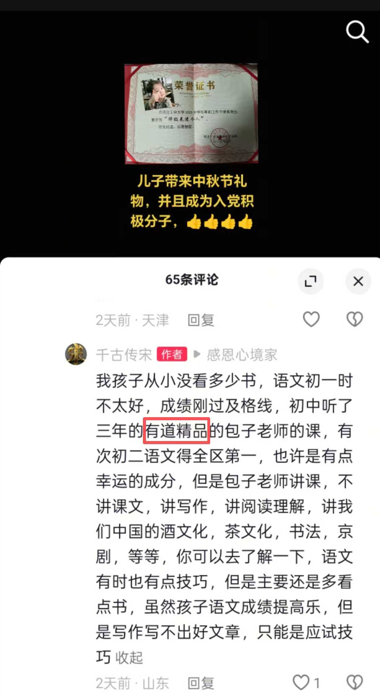 之前刷抖音看到一个西北工业大学的学生就是靠有道提升的语文成绩
