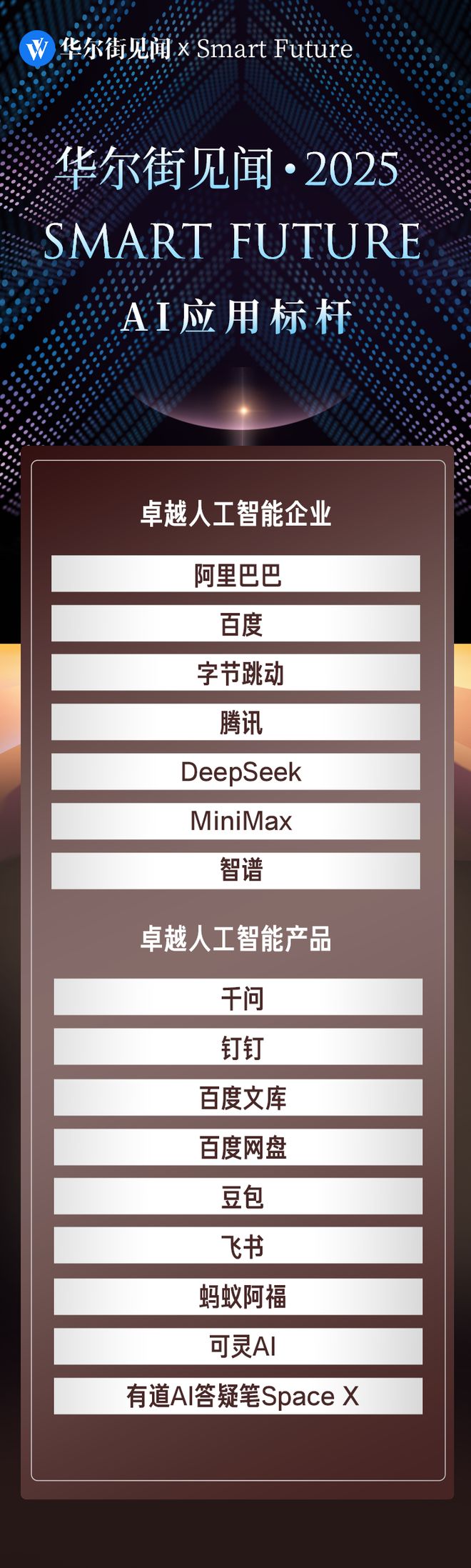 在这变革涌动、价值迸发的时刻,华尔街见闻推出2025「Smart Future · AI应用标杆」评选,旨在表彰那些在不确定性中确立新坐标的领航者。