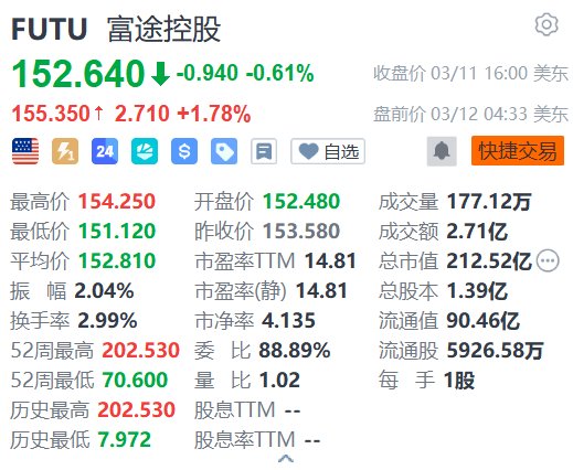 富途控股(FUTU.US)盘前涨1.78%,报155.35美元。消息面上,富途控股公布截至2025年12月31日止第四季度及全年的未经审核营运概要。其中,第四季度总营收为64.38亿港元(约8.27亿美元),按年增长45.3%;在非美国通用会计准则下(Non-GAAP),净利润为34.56亿港元(约4.44亿美元),按年增长77.0%。2025年全年,富途总营收达到228.47亿港元(约29.35亿美元),按年增长68.1%;非美国通用会计准则下(Non-GAAP),净利润达116.45亿港元(约14.96亿美元),按年增加101.9%。(格隆汇)