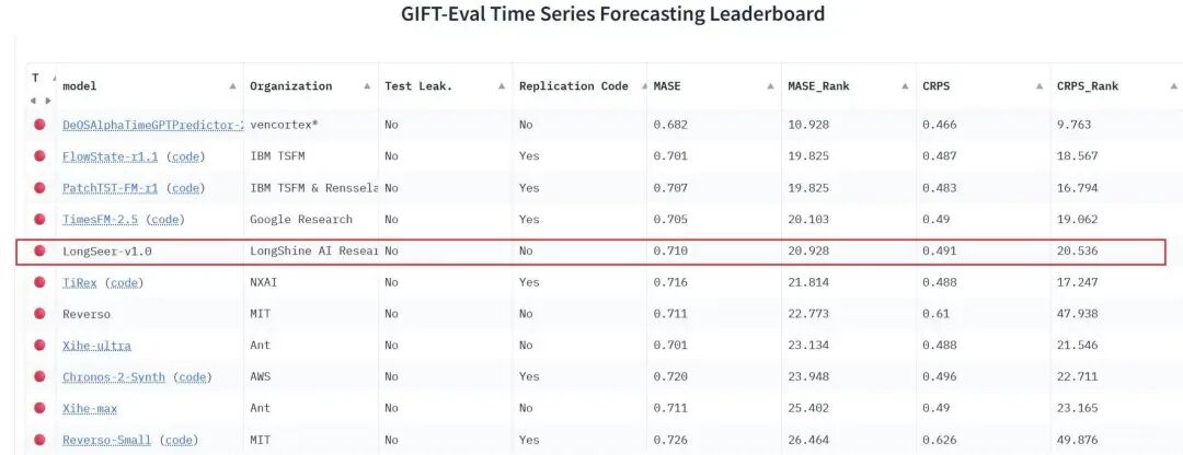 GIFT-Eval被业界公认为全球范围内最具权威性和影响力的时序模型评测基准之一,横跨能源、金融、医疗等7个异构数据分布领域,覆盖10种采样频率,包含超过14万条真实世界的时间序列数据,数据量远超传统基准。该评测要求模型必须具备极强的领域适应能力,无法通过单一领域的过拟合来取得高分,重在检验模型在极端多元复杂场景下的真实性能。