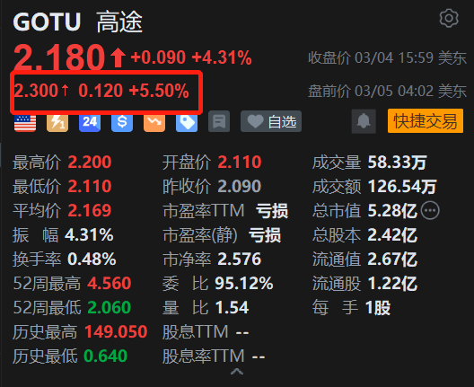 领先的科技驱动型教育公司高途(GOTU.US)盘前涨5.5%报2.3美元。消息上,高途2025年第四季度收入为16.853亿元人民币(单位下同),去年同期为13.886亿元,同比增长21.4%;净亏损为8,418万元,去年同期为1.358亿元。公司预计,2026年第一季度收入将在15.78亿元至15.98亿元之间,继续保持稳健增长态势。(格隆汇)
