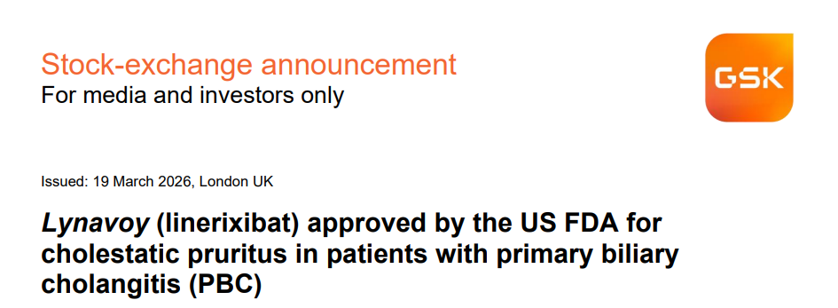 当地时间 3 月 19 日,葛兰素史克(GSK)宣布,美国 FDA 已批准利奈昔巴特(Linerixibat)上市,用于治疗原发性胆汁性胆管炎(PBC)成人患者的胆汁淤积性瘙痒。新闻稿指出,这是首个在美国获批治疗该适应症的药物, 代表着 PBC 瘙痒治疗领域的一个重要里程碑。
