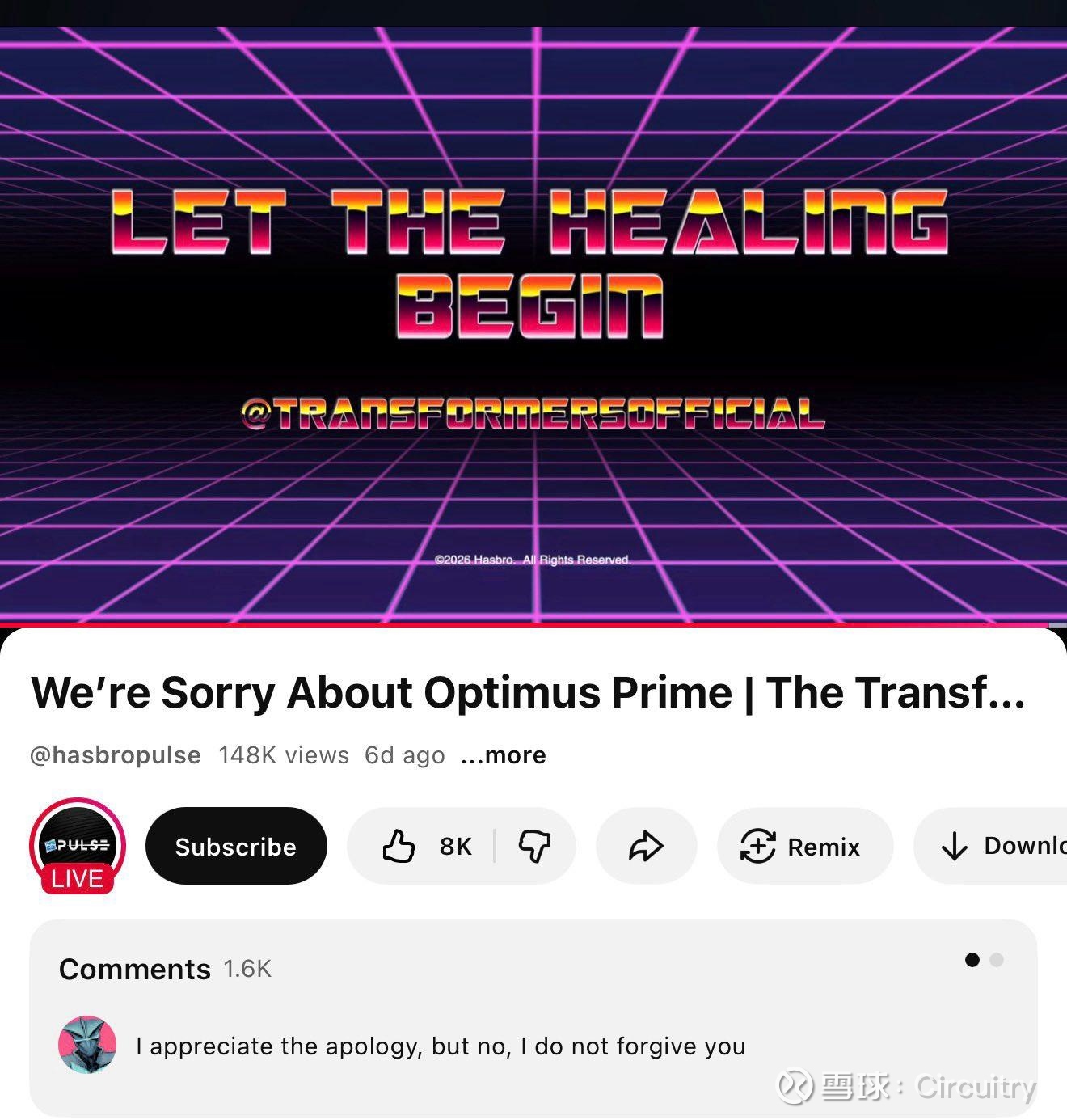 回复@林下之唱: 这是一个老梗。今年是40周年, 孩之宝搞了个巡回活动,名字就叫“1986年道歉巡回(1986 Apology Tour)。
