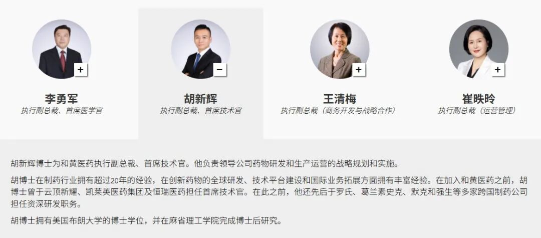 不到半年时间,胡新辉博士再次履新。和黄医药官网显示,胡新辉已加入公司,担任执行副总裁兼首席技术官。