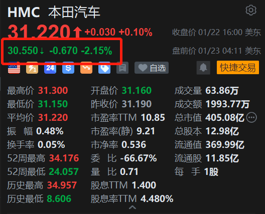 日本第二大汽车制造商本田汽车(HMC.US)美股盘前跌超2%。消息上,通用汽车与本田汽车共同成立的燃料电池系统制造合资公司(Fuel Cell System Manufacturing,简称FCSM)将于今年年底前停止生产。这一决定是在双方进行“广泛讨论”后达成的共识,标志着两家公司在此领域的合作正式结束。停产决定对本田旗下燃料电池车型CR-V e:FCEV的发展前景构成直接影响。随着合资公司停产,这一决定可能意味着CR‑V e:FCEV的未来前景堪忧。