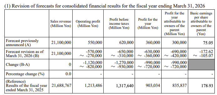 3月12日,本田汽车召开董事会会议,决议取消原计划在北美投产的部分电动车型的市场投放及研发计划。基于此项决议对汽车电动化战略的重新评估,本田现预计在截至2026年3月31日的财年合并财务报表中录得亏损。因此,公司对此前公布的截至2026年3月31日财年合并财务业绩预测作出修订。