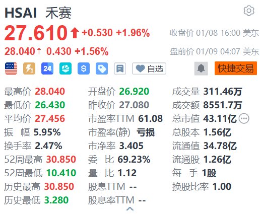 格隆汇1月9日|昨日收涨1.96%的禾赛(HSAI.US)今日美股盘前续涨1.56%,报28.04美元。消息面上,中金发报告指,禾赛本月在CES 2026上展示最新激光雷达技术成果,并更新交付量、产能规划、战略合作等经营情况。量产交付能力领先行业;国内外产能稳步推进。L3车型获工信部准入许可,激光雷达单车数量有望提升。Robotaxi、机器人等下一代物理AI浪潮袭来,激光雷达成关键引擎。该行维持对禾赛2025年营收预测不变,上调2026年营收预测6.4%。考虑到智驾及机器人板块估值中枢上移,上调美股目标价至31.56美元。(格隆汇)