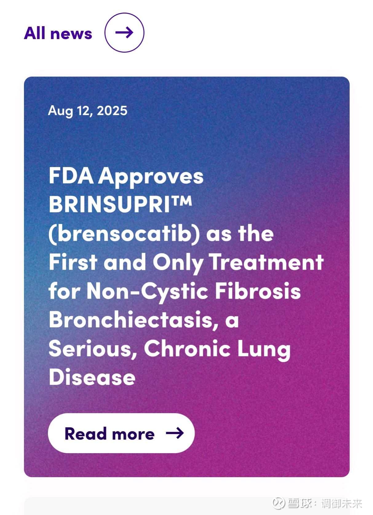 FDA 批准 BRINSUPRI™(brensocatib)用于治疗非囊性纤维化 bronchiectasis(NCFB),这是首个也是唯一一个用于治疗这种严重慢性肺病的治疗方法。