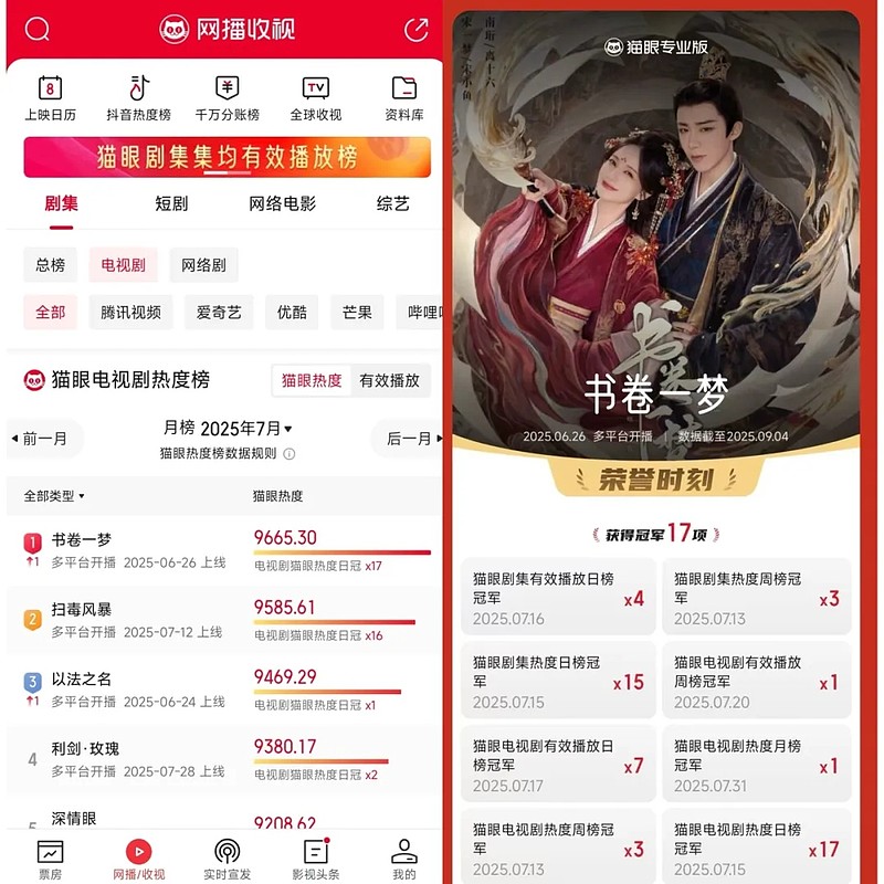 整体来看,爱奇艺在2025年暑期档的表现持续领先且后劲十足。一方面,平台在整个暑期档保持着稳定的内容供给,多部重点剧集在不同时段接力爆发,每个月都有站内热度破万的爆款剧,稳定占据用户心智;另一方面,在现实题材和古装题材这两个竞争最为激烈的核心赛道,也分别都有爆款诞生。