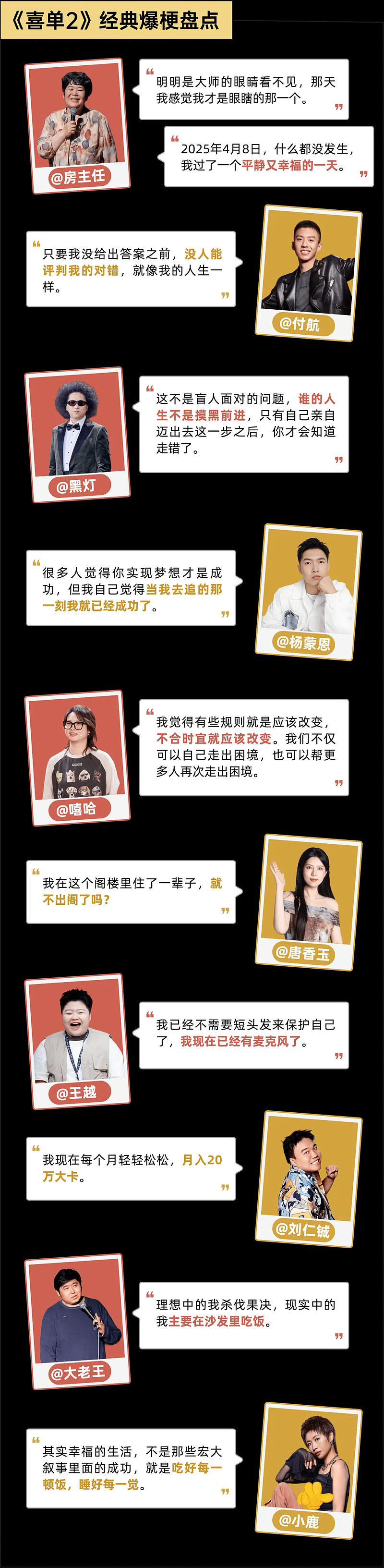 小人物的生活烦恼和思考,不仅只是台上一笑而过的段子,而是掷地有声的回响,在这个充满不确定的时代中,带给人思考和治愈的力量。这才是《喜单2》为什么能在年轻人中迅速竖起口碑的关键原因。