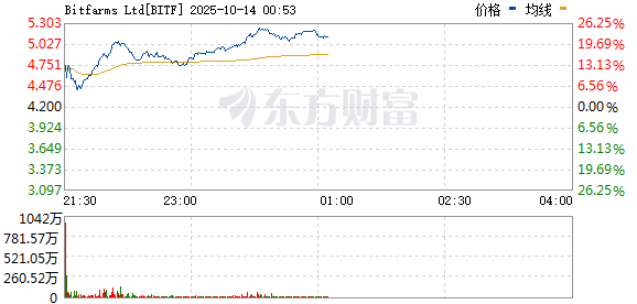 美股加密矿企概念集体走强,Bitfarms大涨24%,Cipher Mining涨超17%,IREN涨近12%,APLD续升9%。