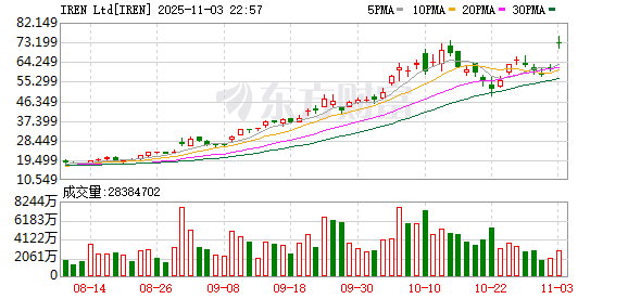 IREN股价升25%,有望创下2024年以来最大涨幅。消息面上,公司与微软签署97亿美元协议,将在德克萨斯州提供云计算服务。