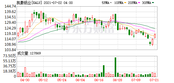 凯撒铝业(KALU.US):2021年Q2财报实现营收7.41亿美元,前值为2.757亿美元,预期值为5.192亿美元,超出市场预期42.73%;每股收益为1.00美元,前值为0.36美元,预期值为1.44美元,比市场预期低30.56%。
