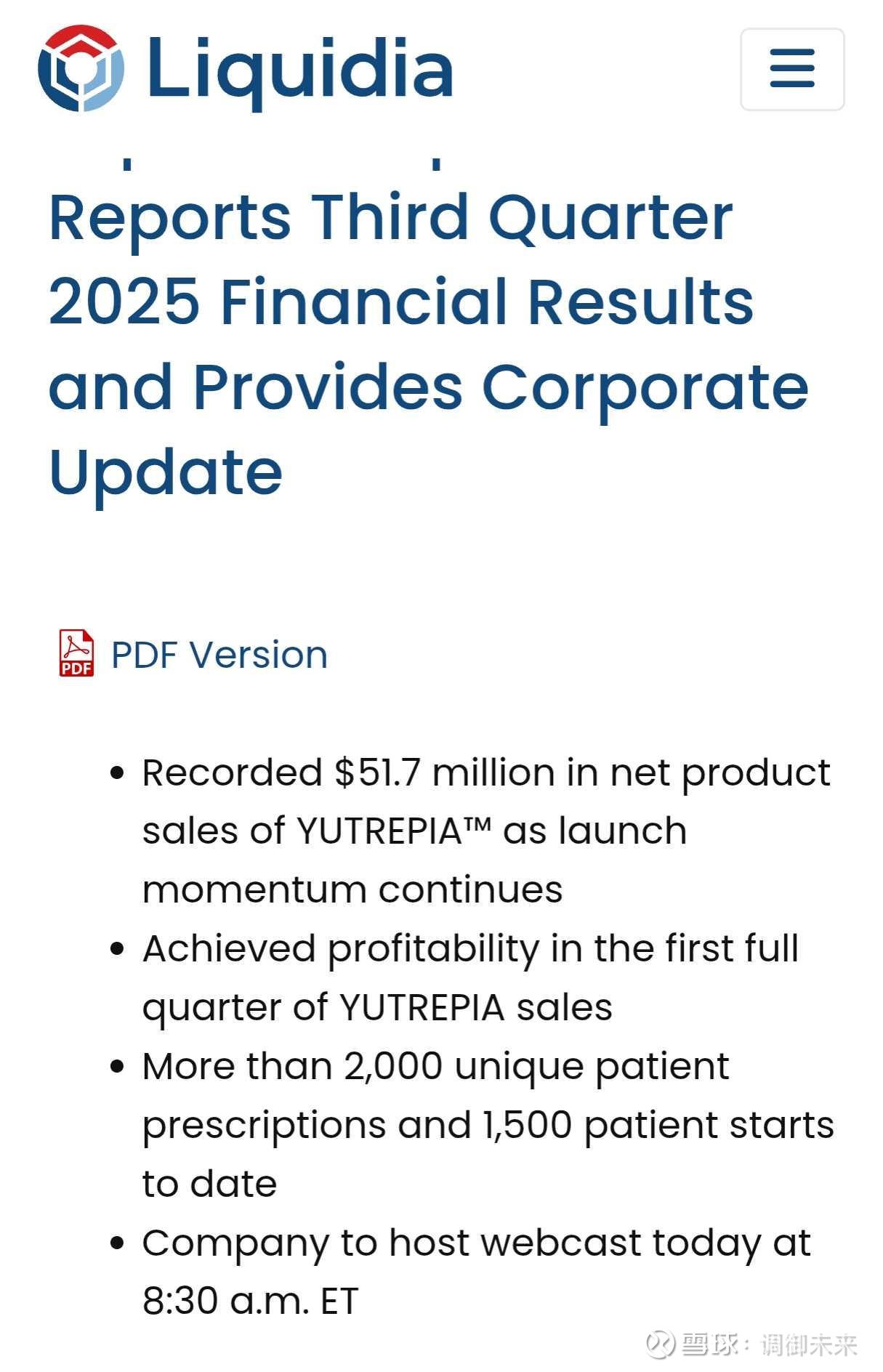 财报,同时还发布了Tyvaso的新制剂,延长了专利期,对