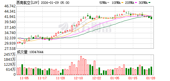 美国西南航空第四季度调整后每股收益为58美分,预估为57美分。