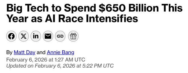 据悉,四家科技巨头的资本支出规划均剑指人工智能工具市场主导权,彭博社数据显示,四家公司2026年的资本支出预算均接近或超过过去三年总和,单家支出规模也将刷新过去十年最高纪录。如此庞大的支出规模,业内称其先例仅能在上世纪90年代电信泡沫时期,或是19世纪美国铁路网建设、战后州际公路投资、罗斯福新政救济计划中找寻参照。数据显示,这一支出规模较去年同期预计增长60%,背后是成排搭载昂贵处理器的服务器落地,也引发了一系列连锁反应:相关领域借贷规模创历史新高,能源供应紧张问题加剧,开发商与担忧水电成本上涨的社区间的矛盾也随之凸显。同时,市场担忧这四家在美经济活动中占比持续提升的企业,其巨额支出可能扭曲建筑支出、GDP、耐用品及就业报告等宏观经济数据,让整体经济表现看似更趋健康。