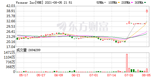 自动驾驶解决方案供应商Veoneer(VNE.US)今日大幅高开,现涨幅为22.3%,报38.22美元,暂成交7282.37万美元,最新总市值为42.77亿美元。高通提出以每股37美元价格收购瑞典自动驾驶企业Veoneer,比曼格纳国际的报价高出18%。7月22日,曼格纳国际曾和Veoneer宣布达成一项最终合并协议,曼格纳将以每股31.25美元的现金收购Veoneer。 此前曾有分析称,如果高通与Veoneer携手,高通的骁龙处理器就能搭伙Veoneer的类Guardian软件,从而直接与Mobileye EyeQ以及英伟达 Drive 正面抗衡。