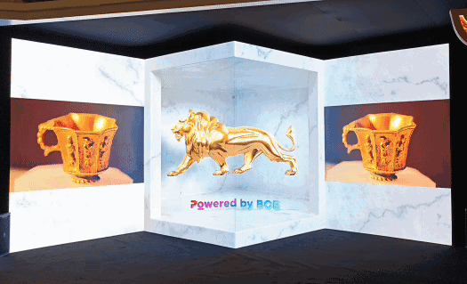 展期内,屏幕生动再现了保利美高梅博物馆“丝路”大展中的珍贵文物,以及美高梅驻场巨制《澳门2049》的精华片段。画面细节纤毫毕现,影像内容仿佛“溢出屏幕”,打破了物理空间的限制,为观众构建出触手可及的现实感虚拟空间。观众置身其中,会产生强烈的“视觉包裹”效应,获得跨越时空的“身临其境”之感,让传统文化在数字光影中焕新绽放。