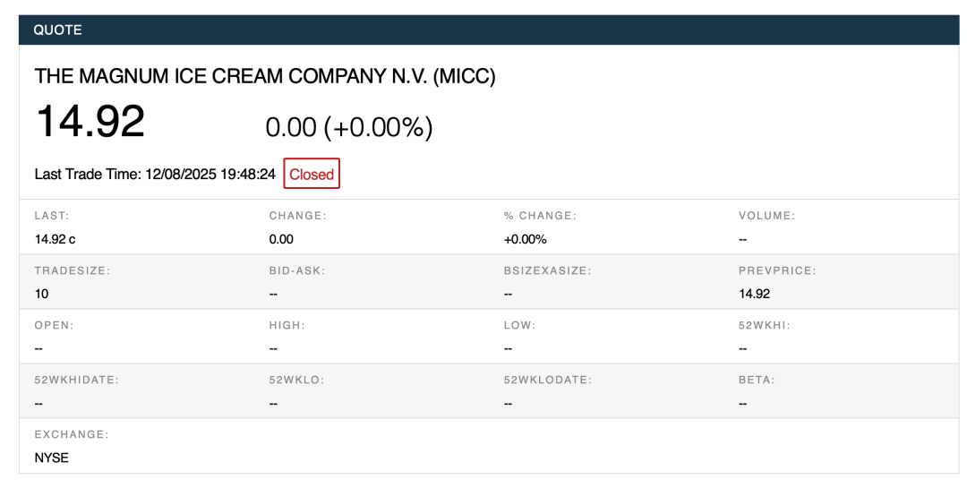 2025年12月8日,梦龙冰淇淋公司(The Magnum Ice Cream Company N.V.)宣布,其普通股已于当日同步登陆阿姆斯特丹泛欧交易所、伦敦证券交易所及纽约证券交易所,完成三地挂牌。