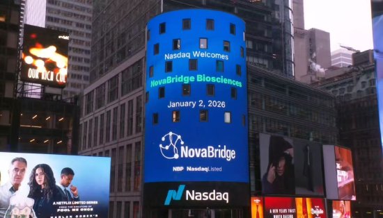 美国东部时间2026年1月2日上午,全球生物科技平台公司新桥生物(纳斯达克股票代码:NBP),在纽约时代广场纳斯达克交易所(Nasdaq MarketSite)敲响新年首个交易日的开市钟,正式开启2026年全球生物科技新篇章。开市伊始,美股市场中概股集体上扬,纳斯达克中国金龙指数盘初涨幅超4%,百度、万国数据等多涨幅一度超10%。