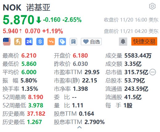 诺基亚(NOK.US)盘前涨1.19%报5.94美元。有市场消息称,诺基亚首席执行官Justin Hotard表示,公司正在评估的四大业务单元——包括其私有无线网络解决方案——与整体战略方向不符,预计将在2026年推进相关业务的剥离或出售。此外据悉,诺基亚正押注人工智能热潮,精简业务以聚焦连接AI数据中心的网络基础设施。该公司周三举办资本市场日。诺基亚宣布,到2028年其年度营业利润预计将在27亿欧元至32亿欧元。(格隆汇)