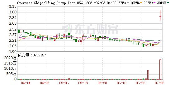 海外航运集团(OSG.US)跳空大涨超34%;开始考虑运输公司Saltchuk Resources的收购要约。