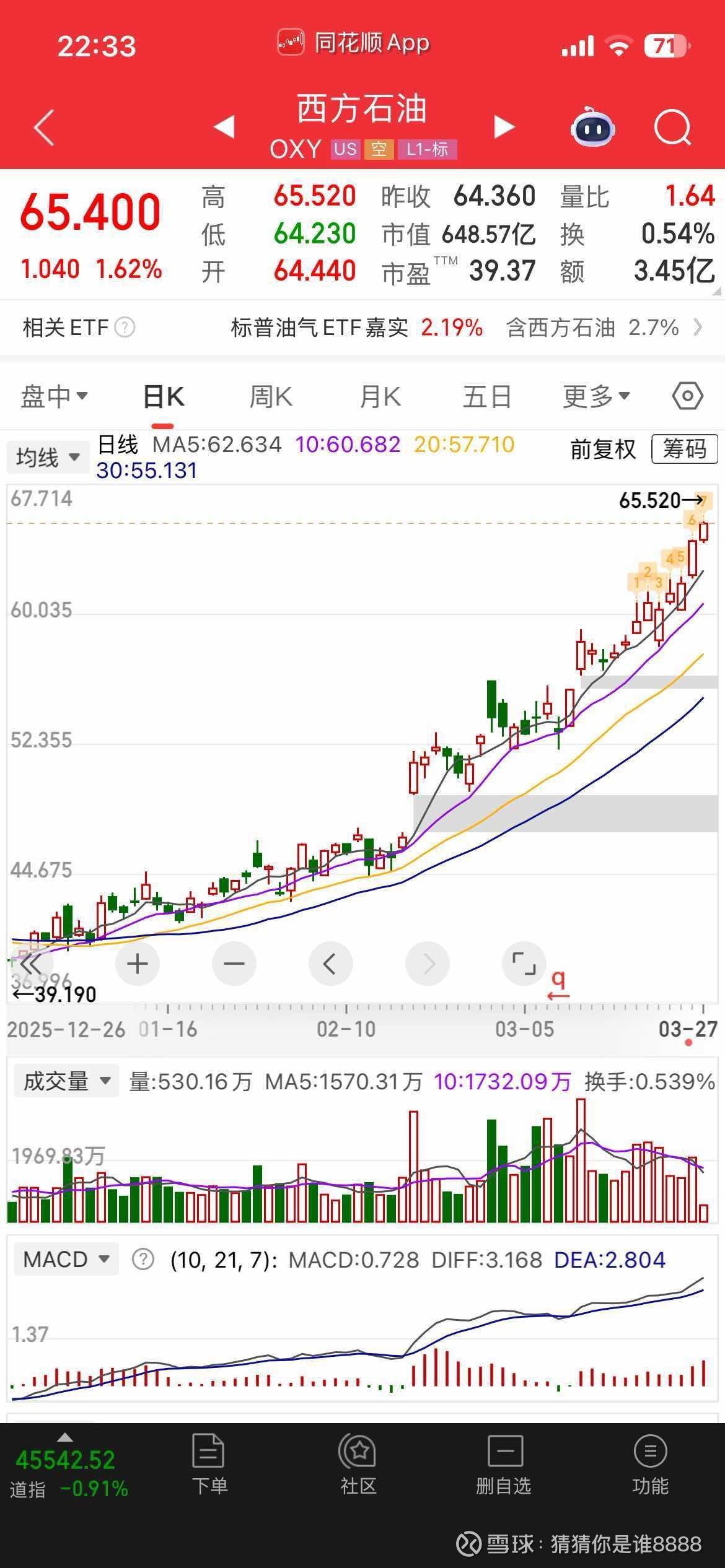 与此同时,西方石油股价依旧新高。