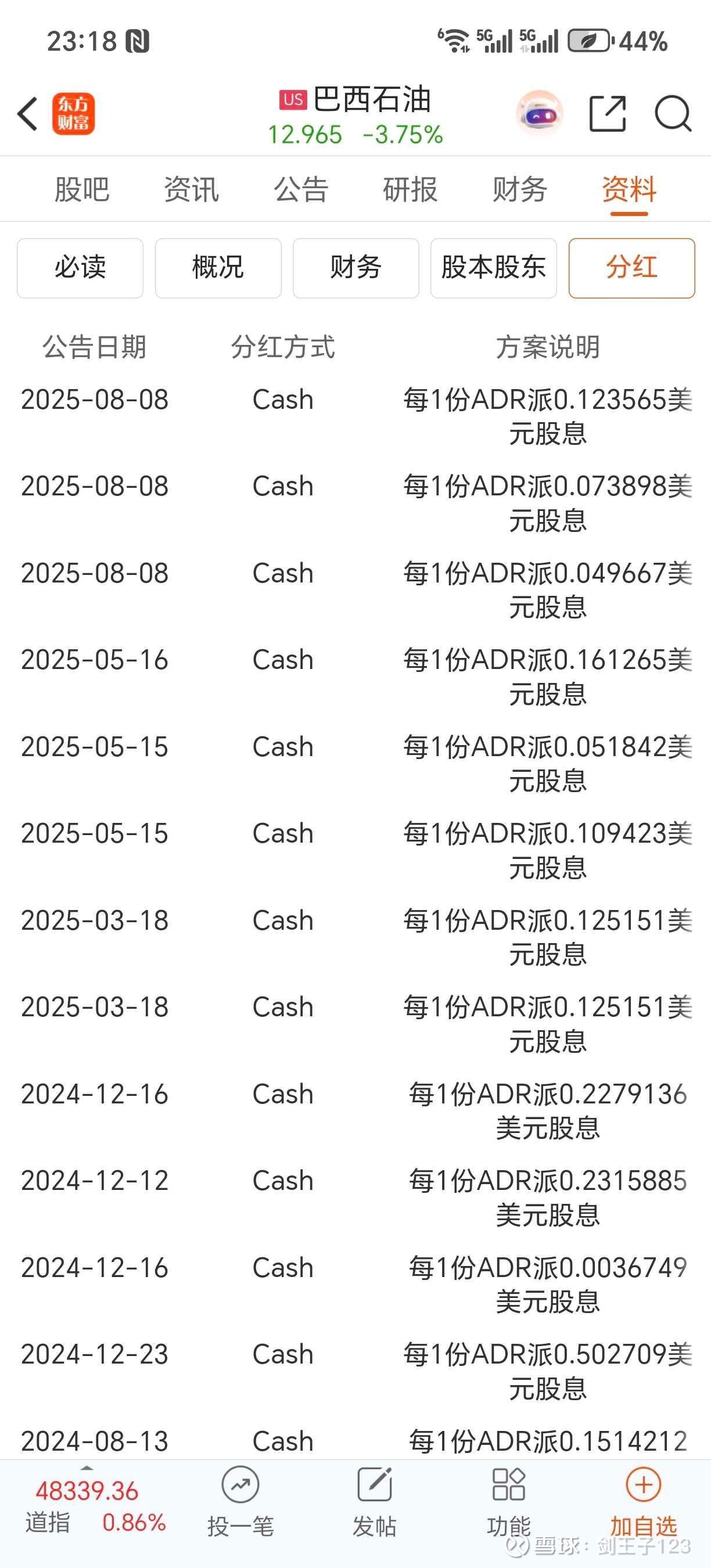 如果各位买20倍市盈率的茅台,是看上了他的分红(说实话不太可能,有点搞笑)的话,那我给大家介绍一家巴西石油公司(PBR) ,三倍市盈率,赚到钱就分。两个月分一次红,一年加起来能分差不多2块,对比12块的股价,股息率15%左右。并...