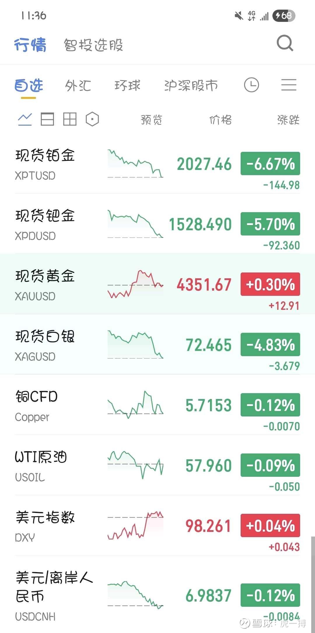 银跳水,铂钯血崩,真是羡慕死了