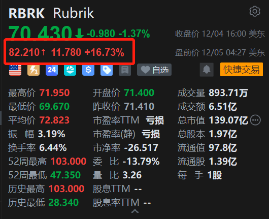格隆汇12月5日|安全与人工智能运营公司Rubrik盘前大涨近17%。消息上,Rubrik2026财年第三季度收入同比增长48%,达3.502亿美元,净新增订阅年度经常性收入(ARR)和自由现金流均创下纪录。公司上调2026财年展望,并期待本财年圆满收官。