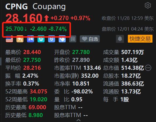 韩国电商巨头Coupang盘前大幅下跌近9%。消息上,Coupang称,该公司3,370万个客户账户的个人信息遭到未经授权的数据访问而外流。Coupang被称为韩国的亚马逊,是韩国最大的在线零售商,其 "Rocket"快速送货服务对许多韩国人来说无处不在。该公司补充说,调查仍在进行中,公司将继续与执法和监管机构合作。
