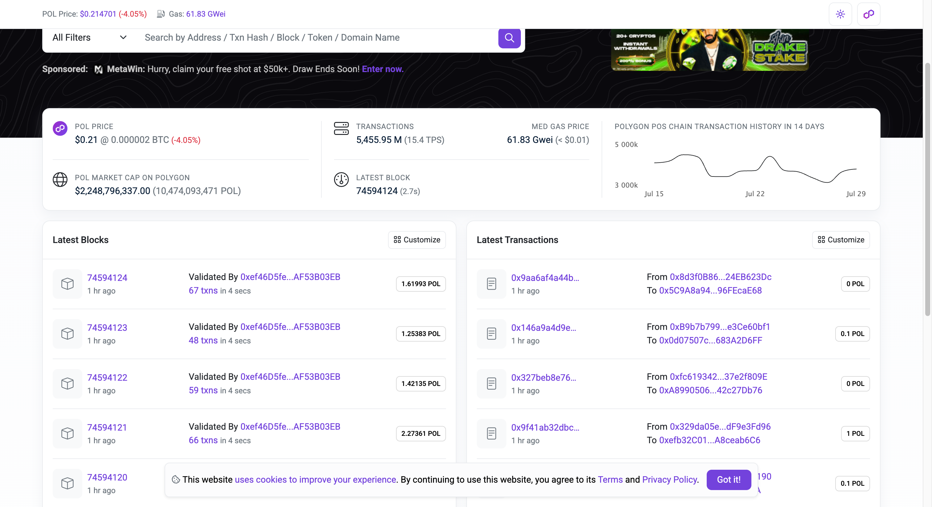 吴说获悉,Polygon 区块浏览器显示最新出块记录为 1 小时前。Polygon Labs 的人员在 DC 中表示,Polygonscan 正在更新数据,链本身没有宕机,只是部分 RPC 服务提供商需要更新补丁。