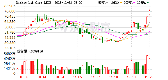 民营火箭公司火箭实验室(Rocket Lab)收涨10%,股价连续三日上涨,累计涨幅达44%,创2021年以来最佳表现。
