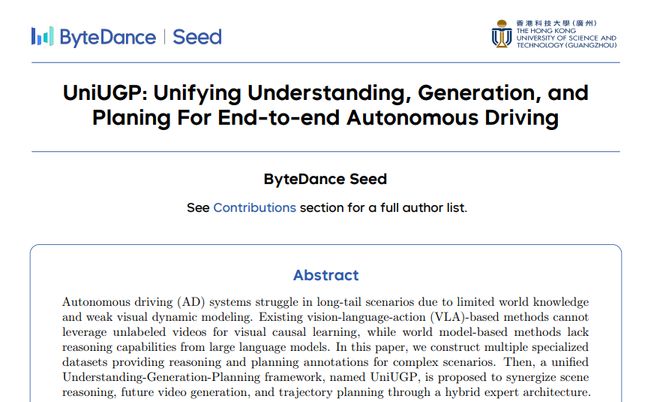 自动驾驶汽车如何才能真正像人类司机一样思考和行驶?这个让无数研究者头疼的难题,最近迎来了令人兴奋的突破性进展。ByteDance Seed团队的研究人员在2025年12月11日发表了一项开创性研究,提出了名为UniUGP的统一端到端自动驾驶框架。这项发表在最新学术期刊上的研究,完整的作者团队包括来自香港科技大学(广州)和ByteDance Seed的多位研究人员,感兴趣的读者可以通过arxiv:2512.09864查询完整论文。