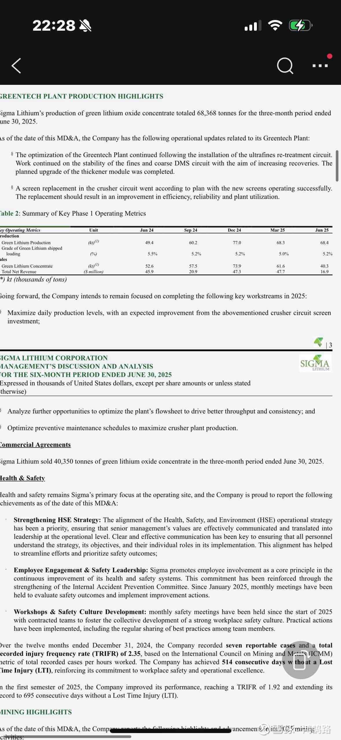回复@柯中: 柯总,纠正一下,$Sigma Lithium(SGML)$ q2产量6.8万吨,大概与q1持平,h1产出13.7万吨左右,根据公司自己给的折算率,折合lce2万吨左右吧,不知道你根据的财报是哪里的?