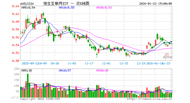 1月23日,恒生互联网ETF(513330)涨0.92%,成交额20.61亿元。当日份额增加1600.00万份,最新份额为676.33亿份,近20个交易日份额增加8.00亿份。最新资产净值计算值为372.39亿元。