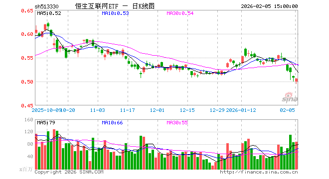 2月5日,恒生互联网ETF(513330)跌0.39%,成交额44.07亿元。当日份额增加3.60亿份,最新份额为724.83亿份,近20个交易日份额增加61.60亿份。最新资产净值计算值为369.23亿元。