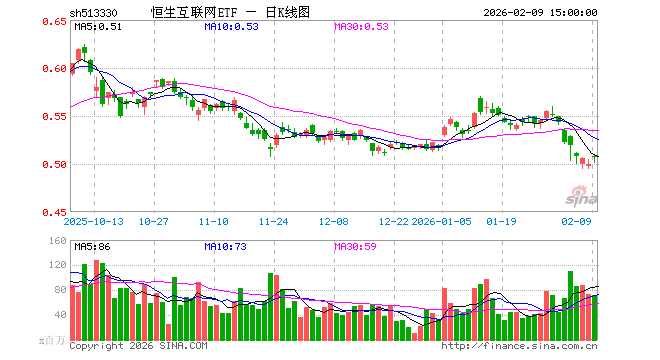 2月9日,恒生互联网ETF(513330)涨1.40%,成交额36.10亿元。当日份额增加2.10亿份,最新份额为732.21亿份,近20个交易日份额增加65.30亿份。最新资产净值计算值为370.13亿元。