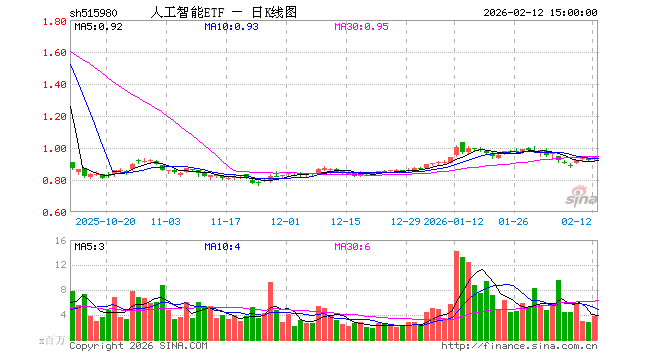 2月12日,人工智能ETF(515980)涨1.95%,成交额3.53亿元。当日份额减少1200.00万份,最新份额为110.12亿份,近20个交易日份额增加14.43亿份。最新资产净值计算值为103.22亿元。